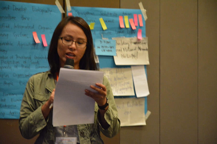The topic was further discussed in four workshops the following day which focused on the RCEP, led by APRN and APWLD, the struggle for Climate Justice, led by IBON International, Energy and Extractive Industries, led by Center for Environmental Concerns-Philippines, and Asia Indigenous Peoples Network on Extractive Industries and Energy, and on Agro-Chemical TNCs and Food Sovereignty, led by the Philippine Network of Food Security Programmes and PAN AP.
